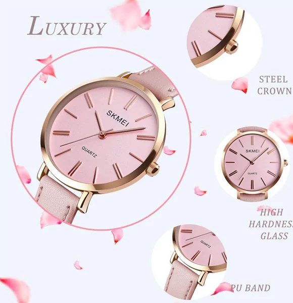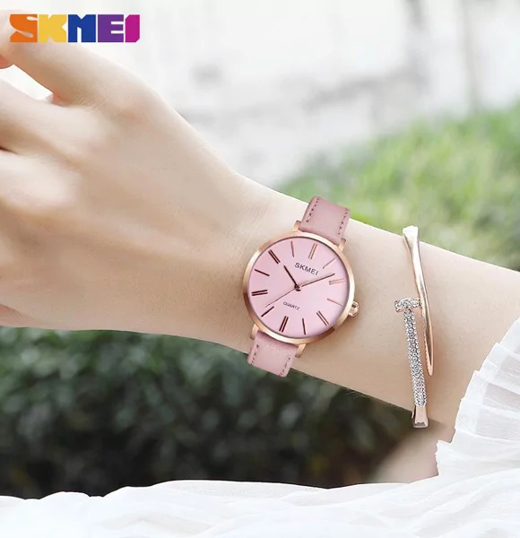 Skmei 1397 Casual Leather Strap Watch Simple 3bar Waterproof Quartz Wristwatches