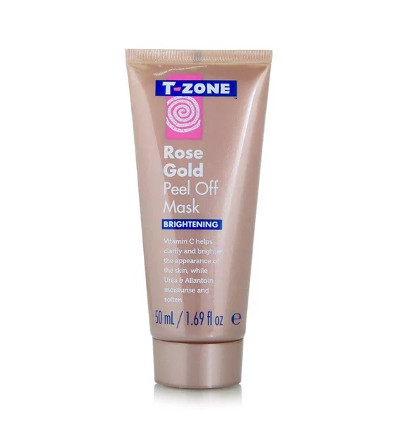 T-Zone Rose Gold Peel Off Mask helps brighten and clarify the skin, draws out impurities, and unclogs pores. Enriched with Vitamin C for radiant, smooth-looking skin, naturally moisturizing and skin softening Urea and soothing, protecting Allantoin.
